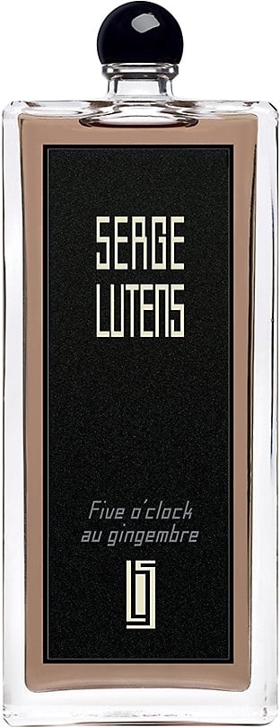 Si Five O’Clock au Gingembre nous emmène tout droit en Angleterre, il est alors plutôt question d'un luxe britannique emprunt de l'époque du colonialisme. En outre, celui-ci sent l'odeur délicate du thé agrémenté d'épices. Son départ est particulièrement frais et inhabituellement masculin. Il se compose, en outre, de gingembre et de poivre. De même, la bergamote pétillante relève la vivacité de l'ensemble et vient annoncer sa connotation de thé. Là, une touche fruitée et balsamique fait son apparition. Ainsi, Serge Lutens nous rappelle que son parfum ne s'apparente en rien à une Cologne. Une prune confite arrondit l'ensemble de sa tonalité sombre et sirupeuse. Elle est alors accompagnée d'accords boisés. Néanmoins, les notes hespéridées ne quittent jamais l'ensemble. Elles sont ici présentées sous la forme d’écorces de citron et de gingembre confit. Le tout est absolument gourmand et semblerait presque avoir macéré dans un pot de miel. Ainsi, Five O’Clock au Gingembre apparaît comme étant un parfait unisexe ayant de quoi combler la virilité des uns et la gourmandise des autres.