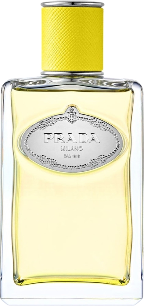 L’Infusion d’Ylang se présente dans l’emblématique flacon des Infusions de Prada. Rectangulaire et épuré, celui-ci ne semble appartenir à aucune époque ni à aucun genre. Pour rappeler le passé de maroquinier de Prada, son bouchon est recouvert d’un cuir Saffiano jaune, don’t la luminosité évoque celle du soleil et de l’ylang-ylang. Qui plus est, cette bouteille de verre reprend aussi tous les codes institutionnels de la marque. Celle-ci est notamment ornée du blason original de Prada, créé en 1913 par le grand-père de Miuccia Prada. Reconnaissable puisque portant les éléments emblématiques de la Maison de Savoie, il rend hommage à l’héritage de Prada et à son savoir-faire de longue date. L’Infusion d’Ylang de Prada se présente dans un unique format de 100 ml.