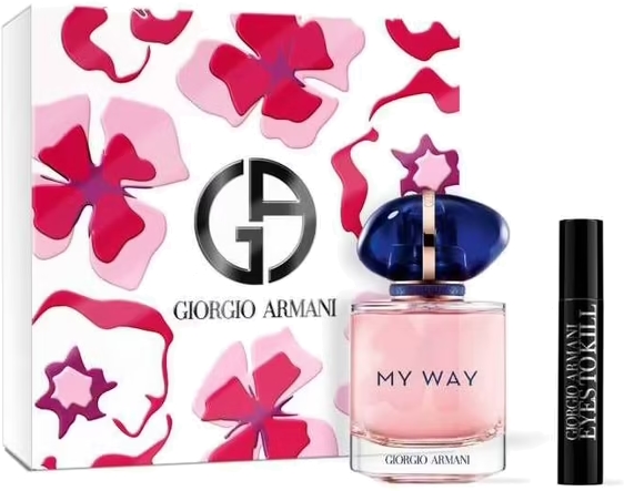 - l'Eau de Parfum My Way en Vaporisateur 50 ml et en CADEAU un mascara Eyes To Kill en format découverte pour révéler l’intensité de votre regard en un coup de maître.