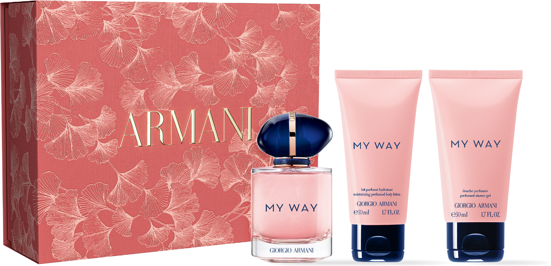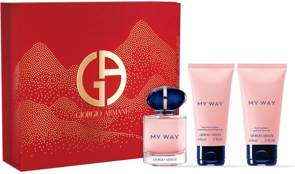 - l'Eau de Parfum My Way en Vaporisateur 50 ml et en CADEAU un Lait Corps 50 ml et un Gel Douche 50 ml.