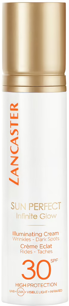 Sun Perfect est la ligne de soins solaires anti-âge globale la plus avancée de Lancaster, un indispensable en matière de protection solaire et de soin de la peau, à intégrer dans votre routine beauté quotidienne. La Crème Protectrice Eclat SP30 de Lancaster Sun Perfect associe la technologie Full Light, une technologie révolutionnaire qui cible 100% du spectre solaire*, avec la technologie Anti-Âge, le Sun Repair Systeme et le complexe Booster d'Eclat d'origine naturelle. Sa formule ultra-sensorielle protège votre peau contre les UVB, les UVA, la lumière visible, la lumière bleue et les rayons infrarouges, la protégeant ainsi des dommages causés par le soleil et renforçant sa résistance au photovieillissement. Ce soin solaire anti-âge global prévient et aide à corriger les signes existants et futurs de l'âge (les rides, les ridules et les tâches brunes) pour une peau uniforme et d'apparence plus jeune. Propre et respectueuse de l'océan, cette formule améliorée offre une hydratation immédiate et de longue durée. Non collante et non grasse, la texture ultra-sensorielle et légère de ce soin solaire pour le visage est facile à étaler et se fond instantanément dans la peau. Invisible une fois appliquée, la Crème Protectrice Eclat SPF30 de Lancaster Sun Perfect illumine instantanément votre peau, la laisse douce et lisse avec un fini velouté pour un éclat naturel été comme hiver. *Aucun produit de protection solaire ne peut offrir une protection totale contre les rayons du soleil. TESTS CLINIQUES +110 % d'hydratation*. -14% d'apparition des ridules** +23% de douceur de la peau** +32% de luminosité de la peau** *Résultats du test clinique sur 25 utilisateurs 1 heure après l'application du produit. **Résultats de tests cliniques sur 25 utilisateurs après 56 jours d'utilisation continue. TESTS CONSOMMATEURS La peau est douce pour 90% des femmes* La formule se fond dans la peau pour 94% des femmes*. La peau est hydratée pour 95% des femmes*. La formule laisse une sensation de confort sur la peau pour 92% des femmes*. La formule fonctionne sur et sous le maquillage pour 94% des femmes**. La texture est hautement sensorielle pour 79% des femmes***. La formule est instantanément invisible sur la peau pour 86% des femmes*. La formule donne une apparence saine et un éclat naturel pour 84% des femmes***. *Test consommateurs sur 79 femmes après utilisation immédiate. **Test consommateurs sur 64 femmes après utilisation immédiate. ***Test consommateurs sur 78 femmes après 2 semaines d'utilisation.