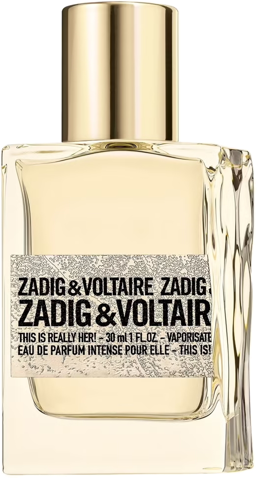 Inspiré de la mode, le flacon de This Is Really Her! a été relooké pour se revêtir d’un effet métallisé, incarnant le chic éternel du style ZADIG&VOLTAIRE. Rehaussé d’éléments dorés éblouissants, le design évoque les lumières étincelantes d’une nuit inoubliable dans la Ville Lumière. Le verre lisse contraste avec l’étiquette emblématique ZADIG&VOLTAIRE désormais texturée évoquant le cuir métallisé pour un look sensuel et subversif.